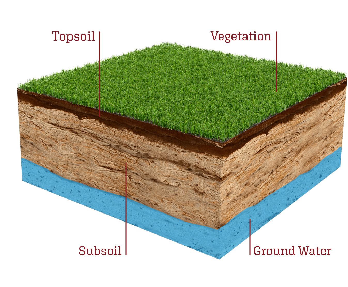 The soil ecosystem develops as a buffer between the atmosphere and the bedrock/parent rock for soil formation (stones, rocks, sediments,…) or the ground water body. The topsoil is forming the fertile crumb, is inhabited by lots of creatures and is feeding the vegetation. In the subsoil weathering processes release nutrients from minerals, water is stored and filtered. The ground water body is one of the most important drinking water storages. The quality of our drinking water is significantly affected by soil fertility and land use.